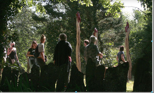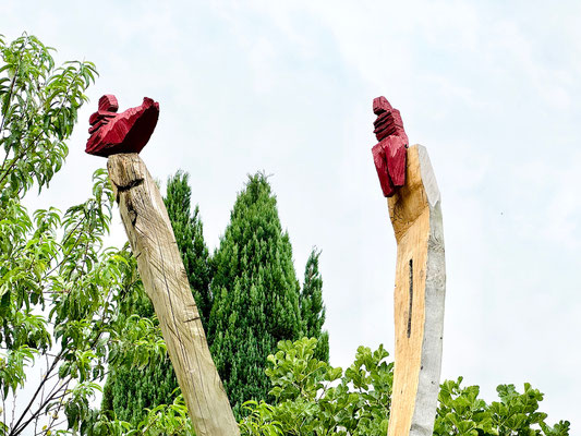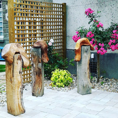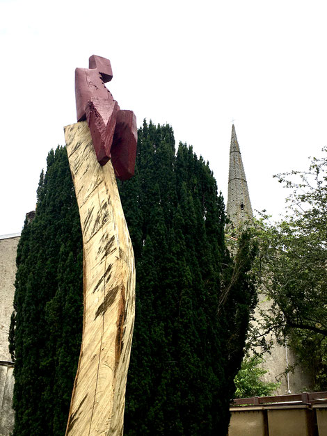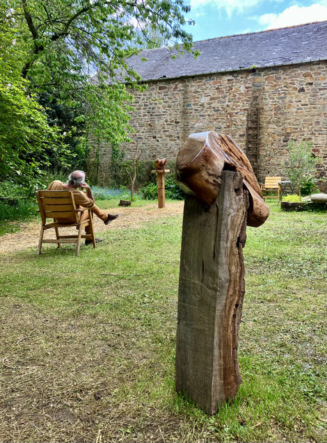Trois sculptures en chêne et en noyer se sont arrêtées dans le jardin du val.