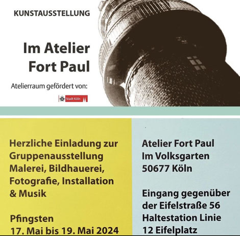 Soutenu par la municipalité, l'évènement "Ateliers Fort Paul 2024" a accueilli mes travaux grâce à la générosité et à la ténacité de l'artiste Katja Egler Streil, qui m'invite depuis plusieurs années. C'est un endroit magique et baroque, dans le quartier sud de Cologne, en Allemagne, où j'ai travaillé et exposé plusieurs fois. Un ancien fort, datant de 1825, où se trouvent des ateliers d'artistes, et dont l'architecture solide se prête aux jeux de lumière et à l'atmosphère de créations qui y éclot.