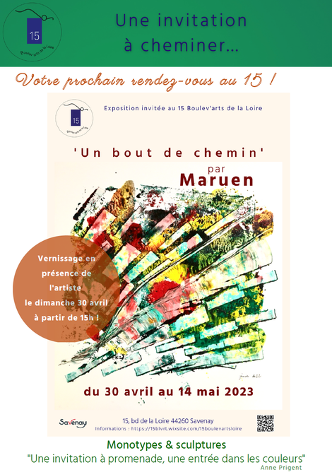 Avril 2023 : invitée à la Galerie du "15boulevard de la Loire", j'y présente une exposition personnelle qui regroupe des travaux d'impression, des monotypes et une partie des sculptures de la série des amorphes. Cette expérience accompagnée d'un texte d'Anne Prigent, enseignante et dessinatrice, a permis d'affiner mes recherches et ma pratique. Je cite:
